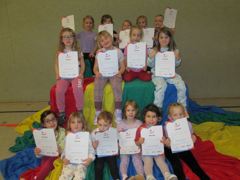 Im Kinderturnen wurden 38 Kindern im Alter von 4-6 Jahren das Kinderturn-Abzeichen verliehen. Von September bis Oktober 2025 turnten sie in der Alois-Jung-Sporthalle an den verschiedensten Groß- und Kleingeräten.