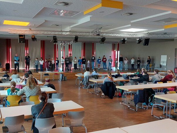 Viele begeisterte Kinder in der Mensa des Lise-Meitner-Gymnasiums