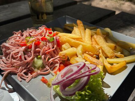 Der Weg führte uns weiter über den Kohlplatz bergab zur Edenkobener Hütte am Hüttenbrunnen. Dort wurden wir mit dem belohnt, was eine echte Pfälzer Wanderung ausmacht: Typisches Hüttenessen und – zur Freude aller Naschkatzen – riesige Kuchenstücke, die für neue Energie sorgten.